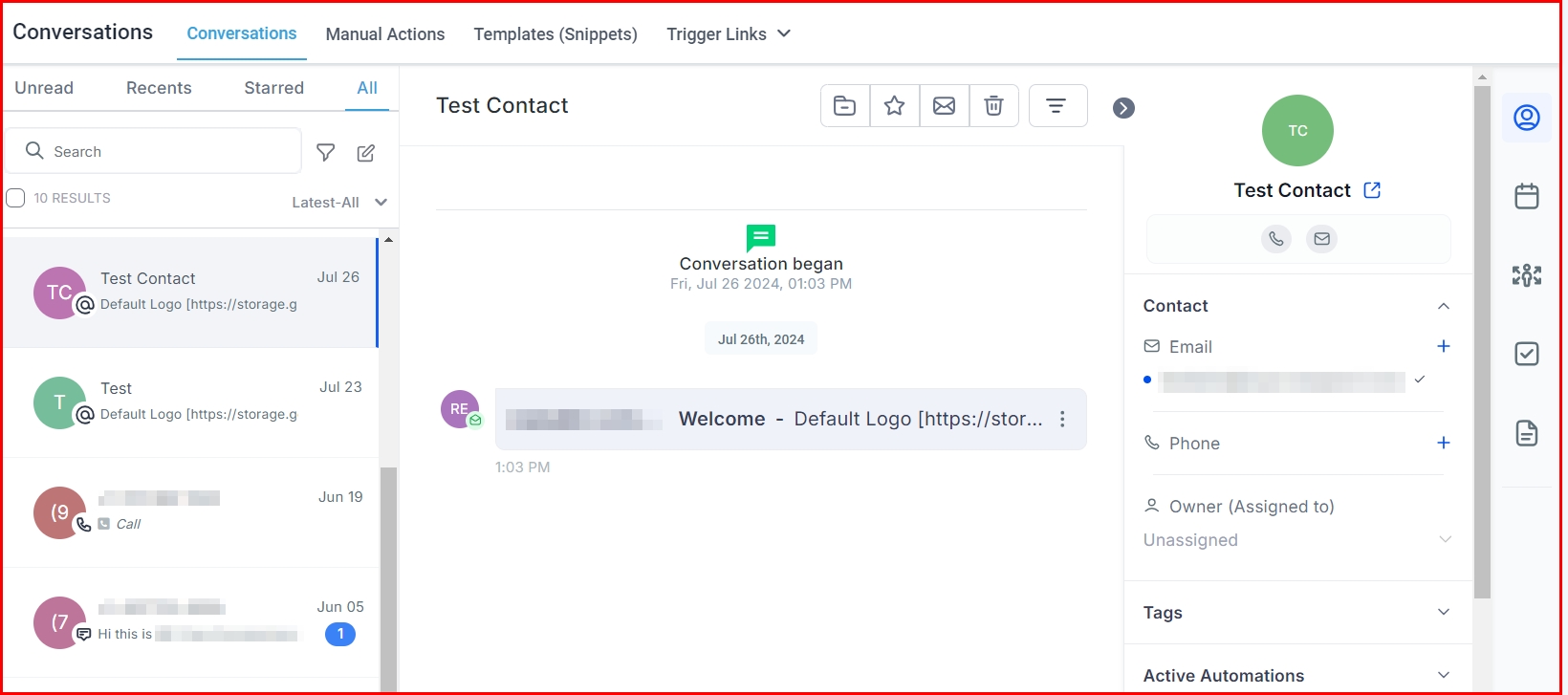 The Conversations section serves as a unified communications center, consolidating all interactions with your contacts, including emails, SMS, and other communication channels. This centralized view helps you manage and track all contact communications.
