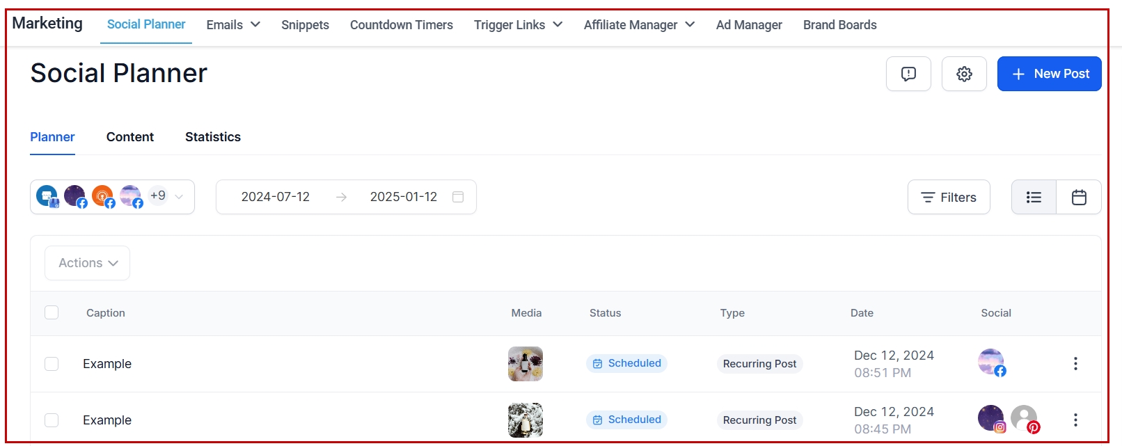 The Contacts section allows you to store and manage all contacts within your platform. You can add contacts individually, import them in bulk, or use marketing forms to collect contact information. This section is essential for maintaining an organized contact database.