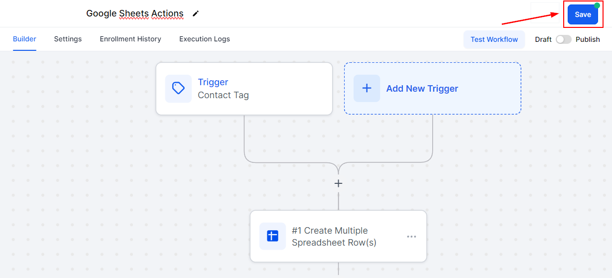 Save your workflow and you're done! This will send the data to your Google Sheets whenever the automation is triggered.