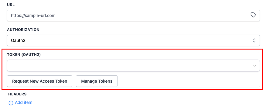 Once OAuth2 is selected, you can either use an existing token by selecting it from the dropdown menu or request a new one.