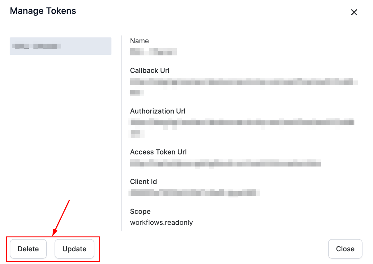 From this screen, you can update or delete tokens as needed for effective management.