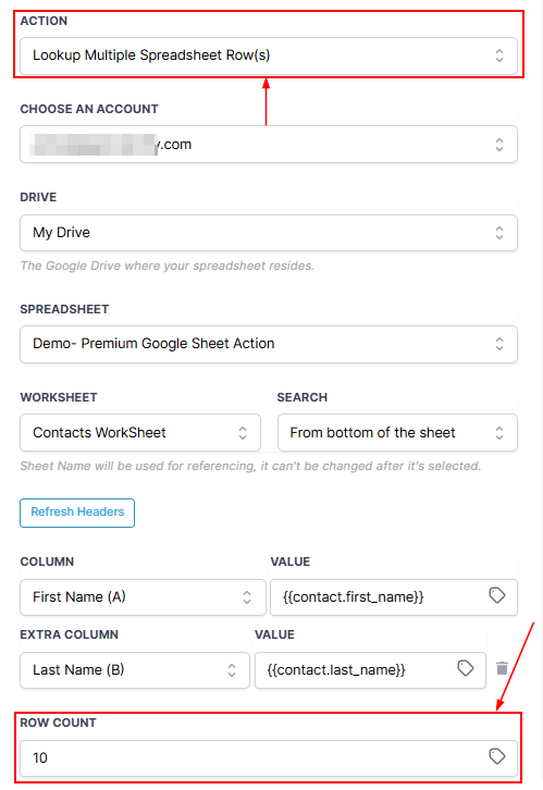 The Lookup Multiple Spreadsheet Rows action allows you to search and retrieve multiple rows of data from your Google Sheets based on specific criteria. Unlike a standard lookup that returns only one row, this feature enables you to find and work with several rows at once, making it particularly useful for tasks like bulk updates, reporting, or filtering data for targeted actions.