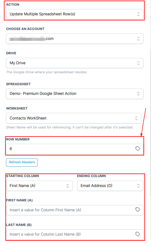 Updating a row in a spreadsheet can be a bit like making corrections in a book. You want to find the right page (row) and then fix the errors (update data). With the "Update Spreadsheet Row using Lookup" action, it's like having an editor for your spreadsheet. Here's how it works: