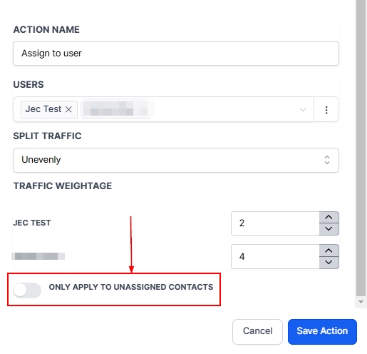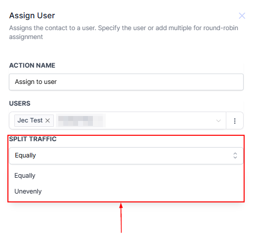 After assigning multiple users to your contacts, the Split Traffic feature becomes active to determine how you want the traffic to be distributed among the selected users.