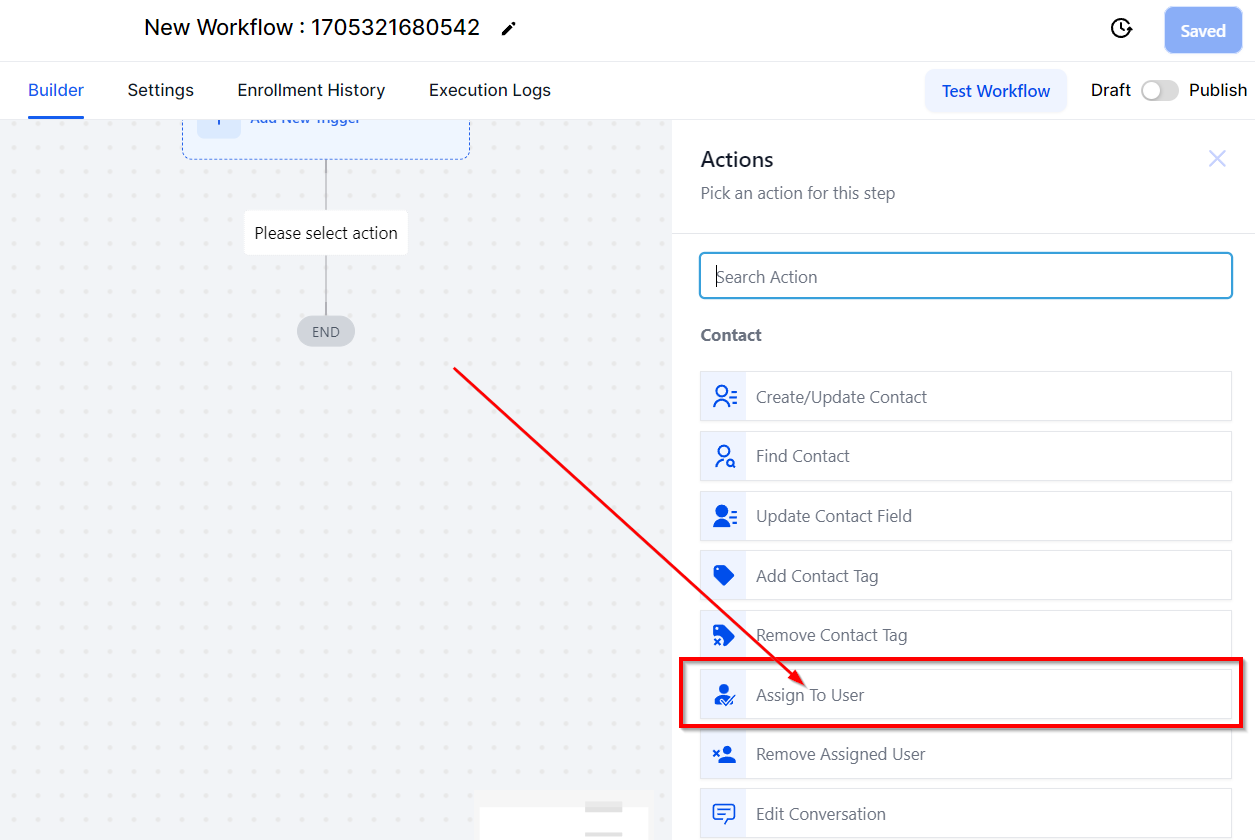 Simply click on the + icon and select Assign to User. Select the user or users you would like to add to assign for the workflow.