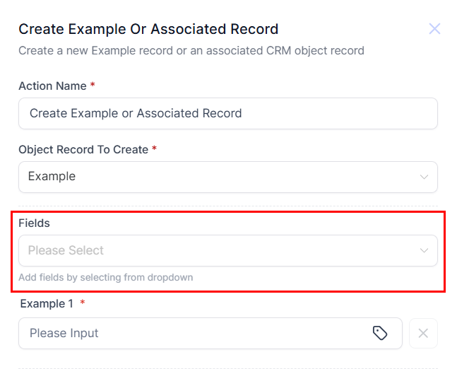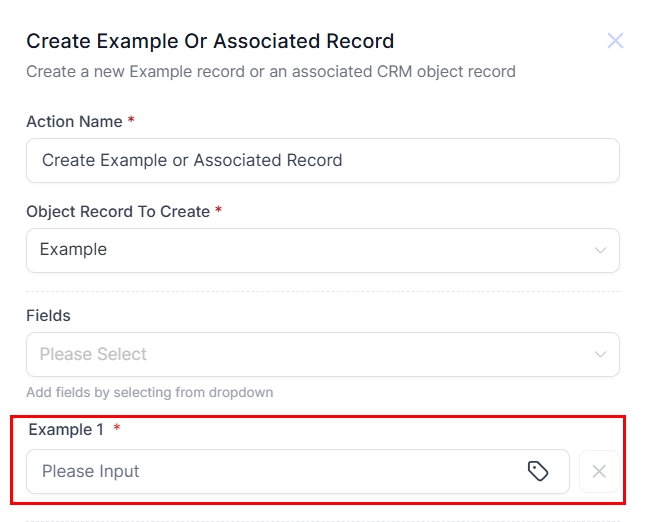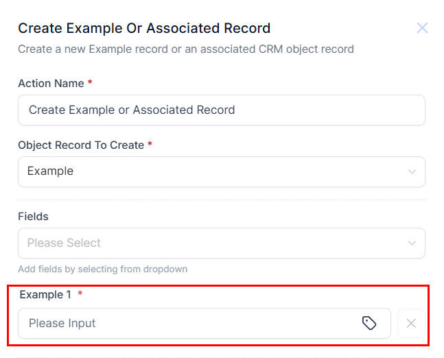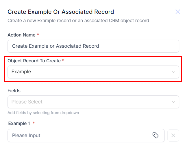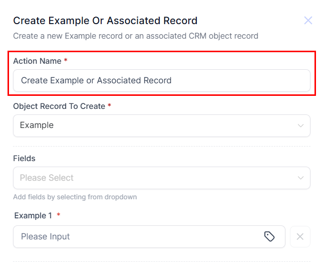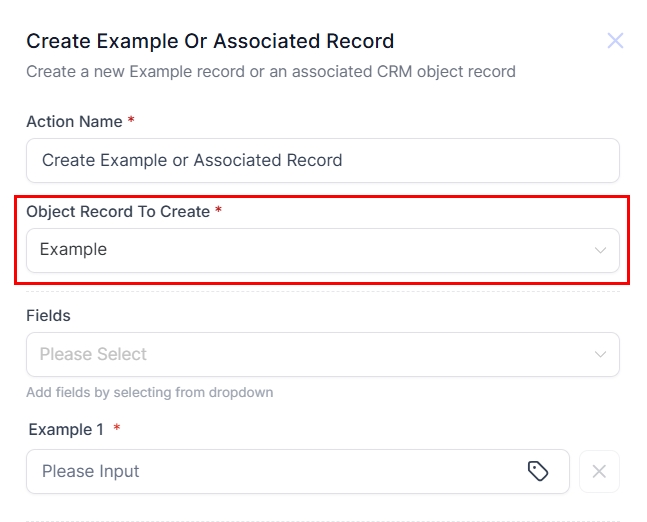 In this guide, we will use an Examples Custom Object to demonstrate how you can use the Create Custom Object or Associated Record Action.