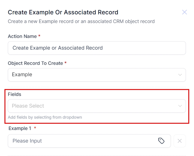 Add fields by selecting them from the dropdown menu. This enables you to include additional details in the object record, ensuring the record accurately reflects the required information.