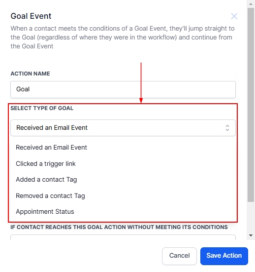 The Goal Event feature is a powerful action for streamlining workflows by intuitively advancing contacts based on specific conditions. Whether your objective is to track email interactions, link clicks, or other key actions, this feature ensures that your workflows are responsive and efficient. By customizing goal types, email events, and subsequent actions, you can tailor the system to align with your business needs.