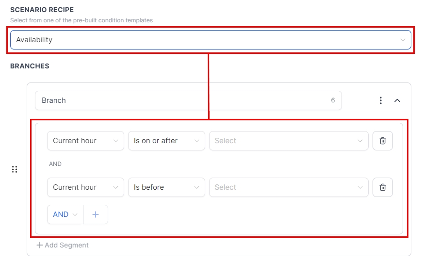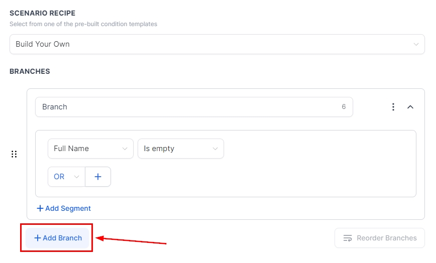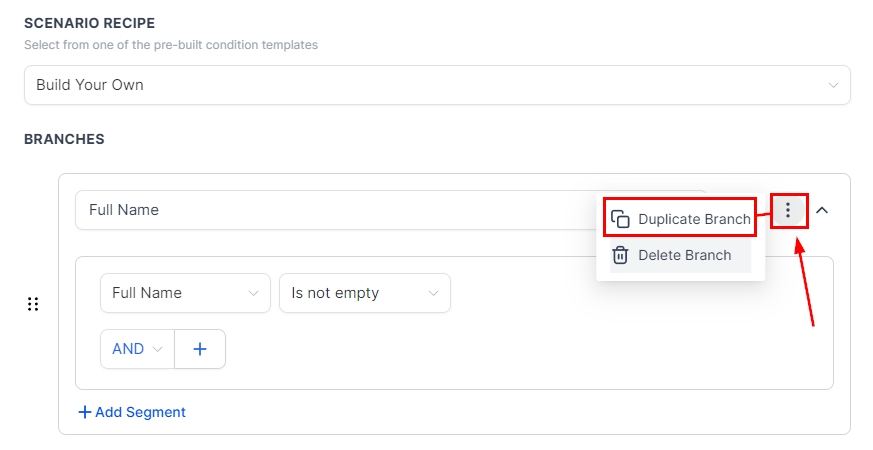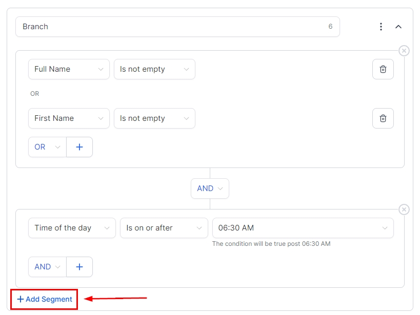 Once the premade branches are filled out you can any additional conditions, segments, or branches needed.