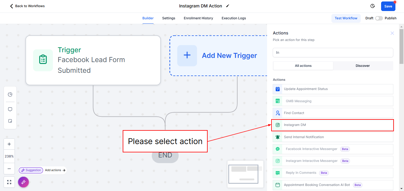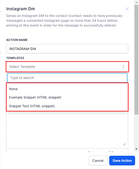 📌NOTE: To send a message to your contacts via Instagram using the Instagram action in your workflow, they should have messaged an Instagram page that is connected to your CRM within 24 hours before arriving at the event.