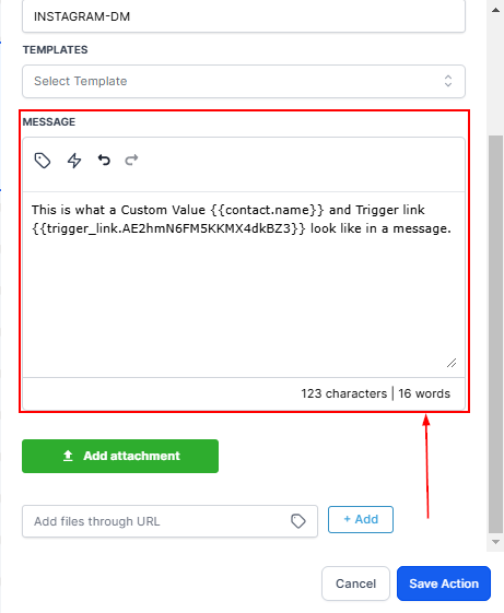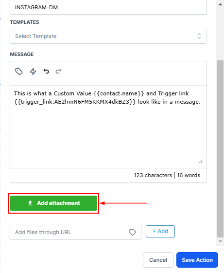 Once you have configured the message, attachments, and other details, click on Save Action to finalize your setup.