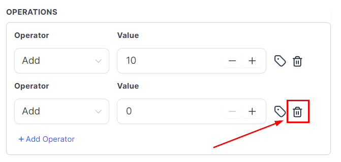 If you've added an Operator you'd like to remove click the trash can icon next to it.