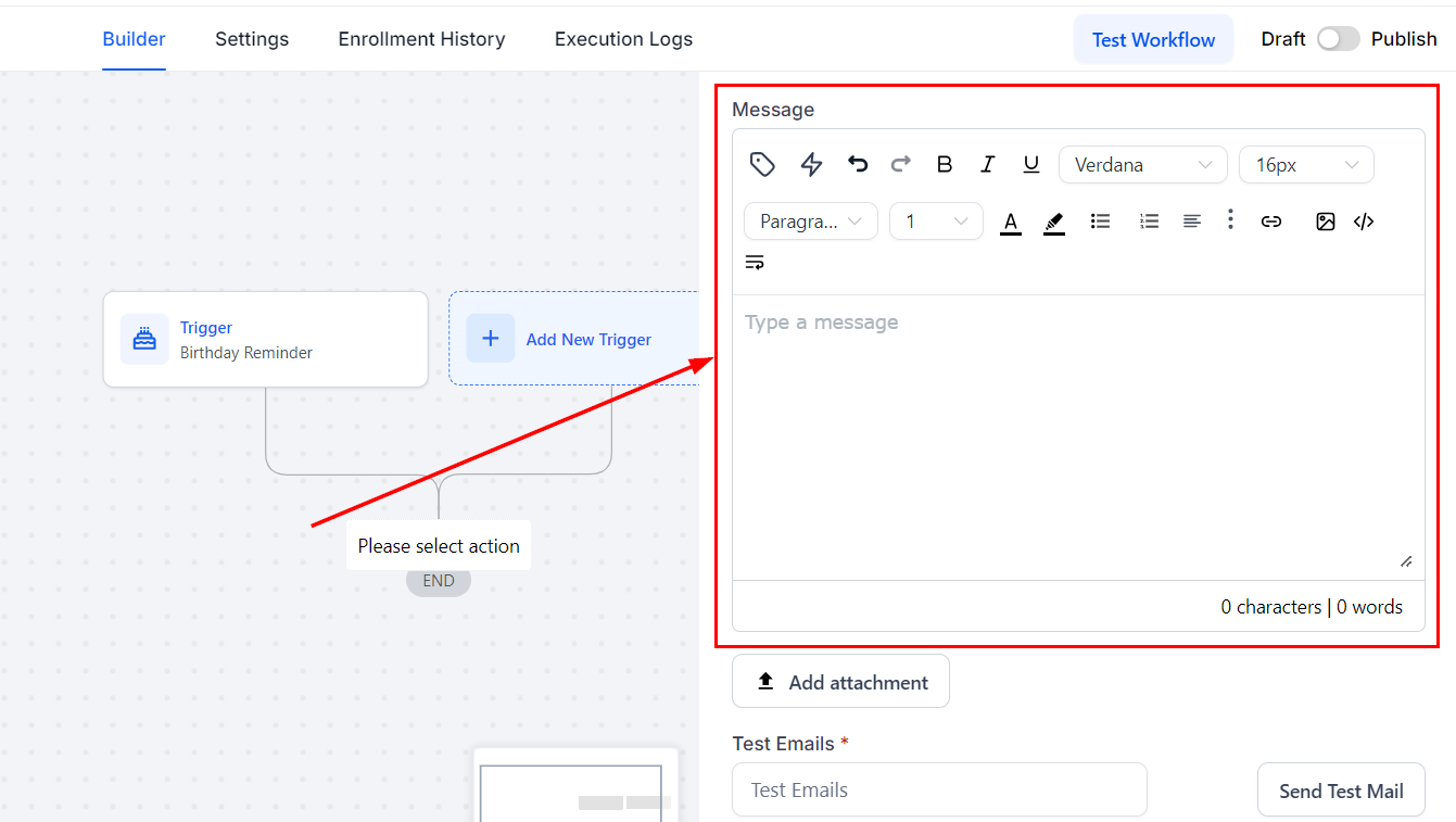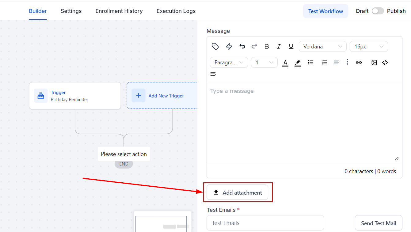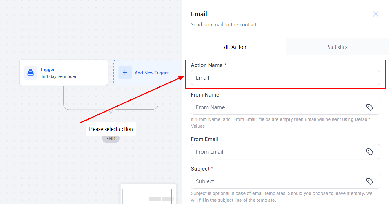The Send Email workflow action is a great feature designed to streamline your communication processes. Automating email delivery based on specific triggers ensures timely and efficient follow-ups while reducing manual effort. Whether you use customized templates or craft messages directly within the action. With detailed delivery statistics, you can monitor performance and optimize your email campaigns.