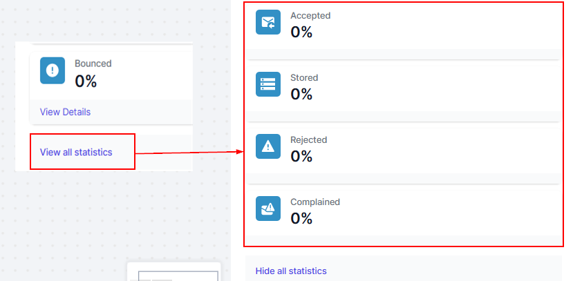 Select the “View All Statistics” button to load the accepted, stored, rejected, and complained statistics.
