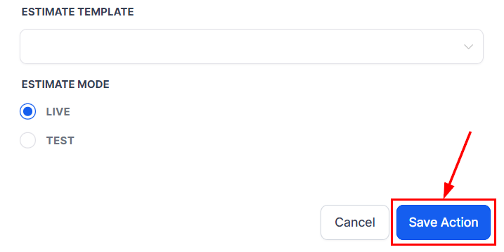Choose Live for actual estimates or Test for trials within the Estimate Mode field.
