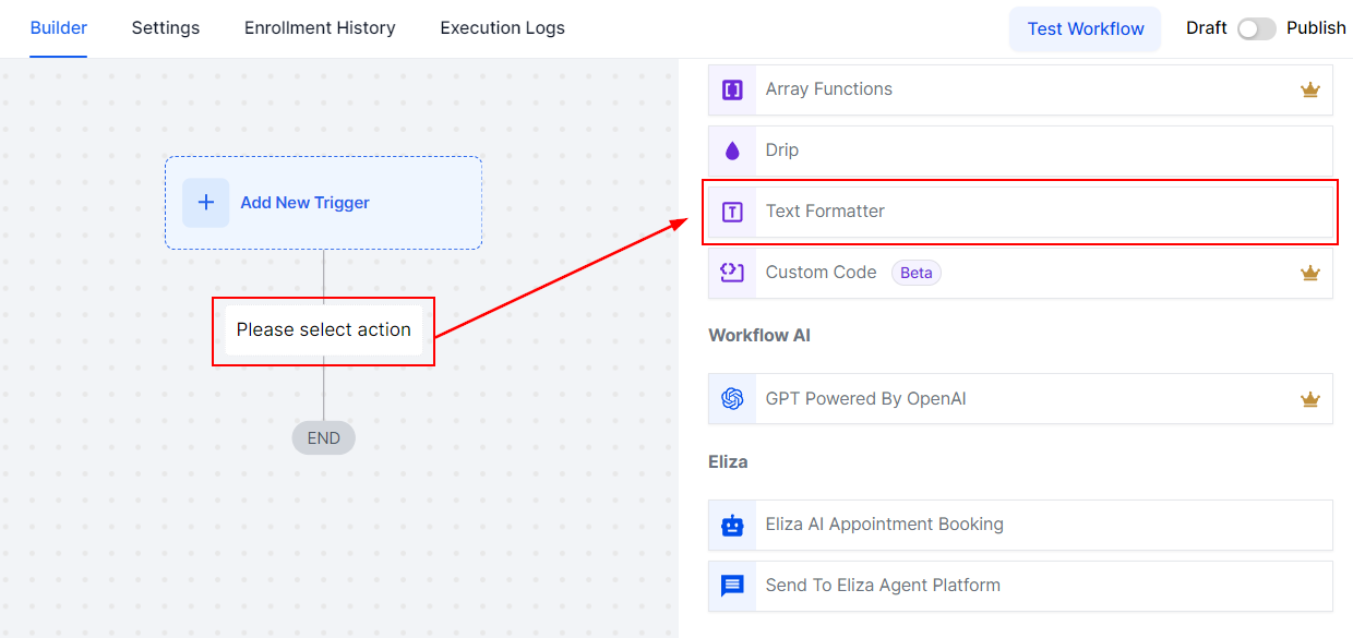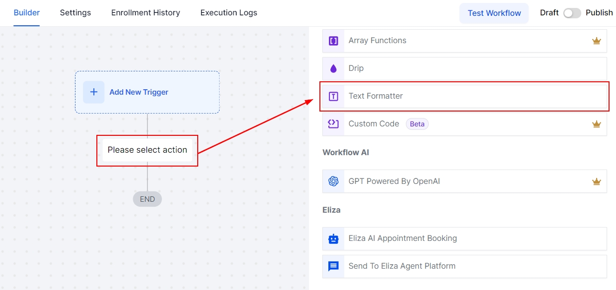 After clicking on it, you'll need to select the Action type, which determines how the text will be formatted. The available actions include: