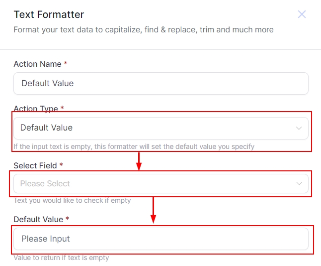 Default Value: If the text you added is empty it returns it to the value you set as default.