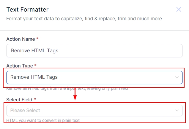 Remove HTML Tags: Strips HTML tags from the text converting them into plain text.