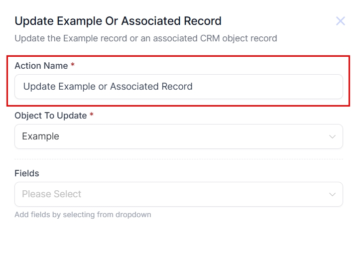 In this guide, we will use an Examples Custom Object to demonstrate how you can use the Update Custom Object or Associated Record Action.