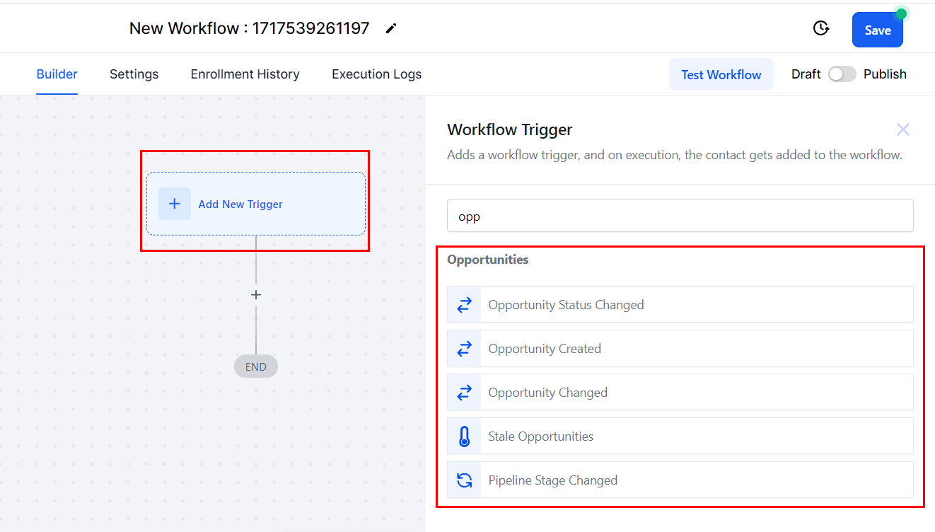 Add an Opportunity-based trigger then save your workflow.