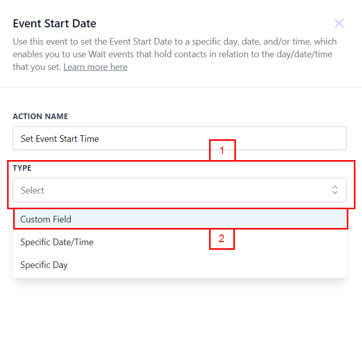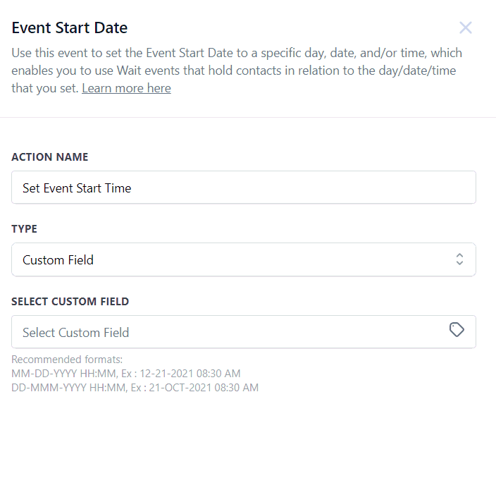 Setting Up Event Start Date Action: