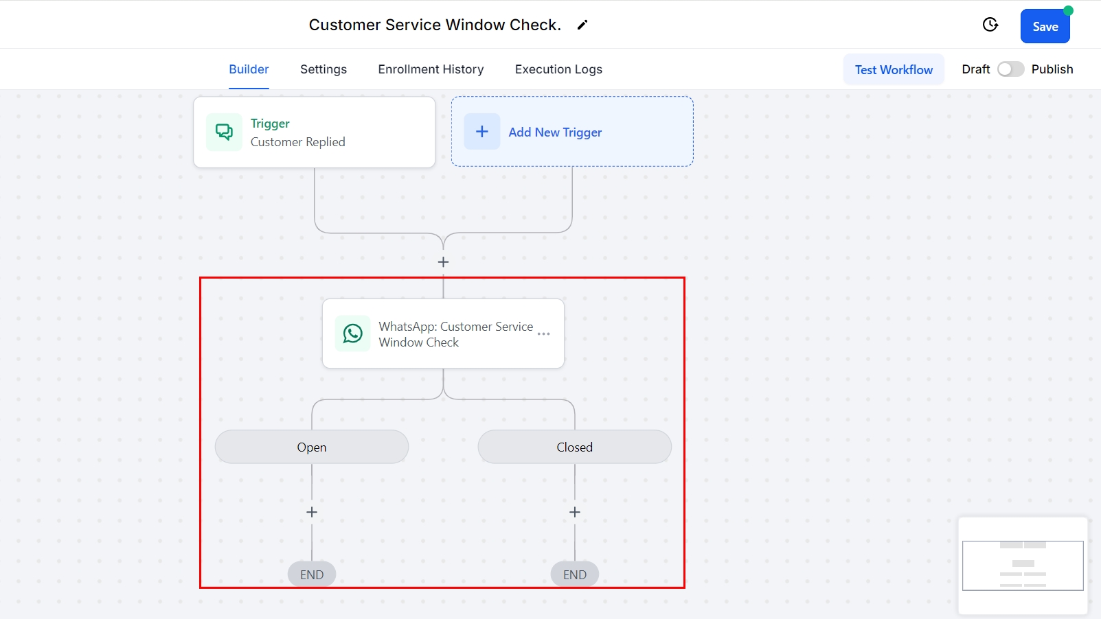 In this article, we will explore how the WhatsApp: Customer Service Window Check condition can be leveraged to create automated workflows and send free-form messages. This feature enables you to determine if an active Customer Service Window is open between your business and a customer. While the window is open, you can send unlimited free-form messages at no cost, for up to 1,000 service conversations each month.