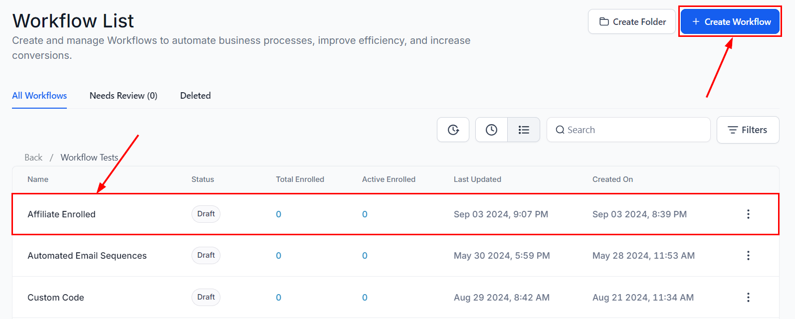 Incorporate actions such as "Send Email" or "Send SMS" to integrate the custom values from the Affiliate Enrolled In Campaign trigger into your communications.