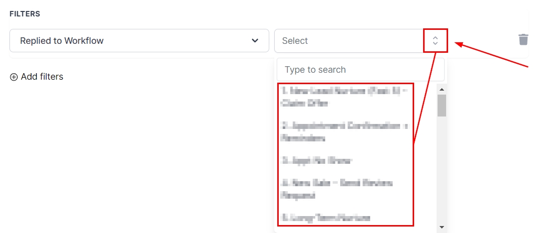 By selecting this filter, you can choose the workflow from which you are looking for a reply.