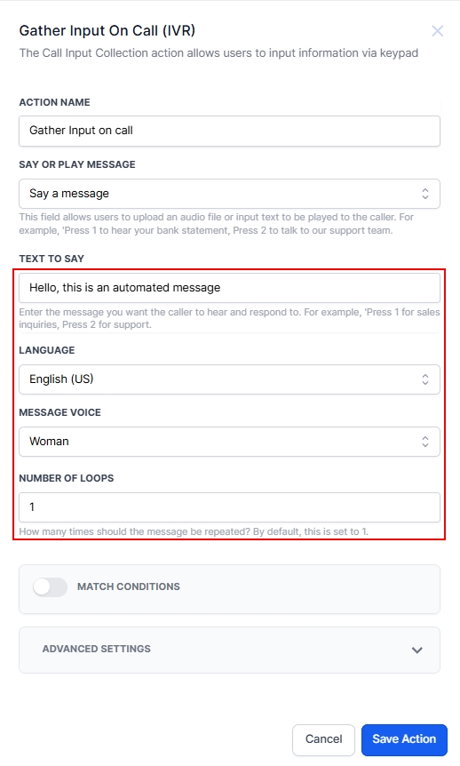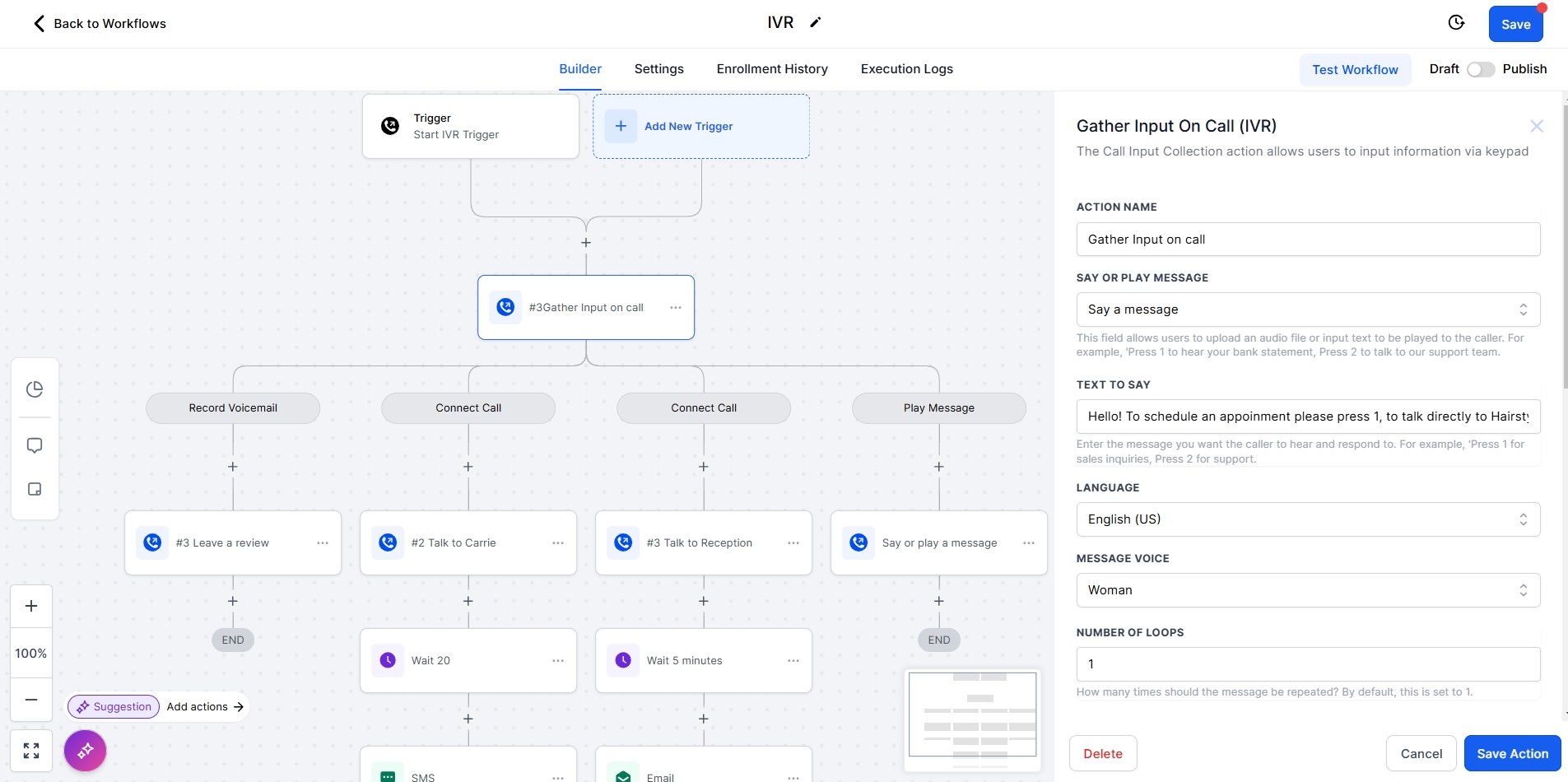Collecting user input is essential for guiding callers to the right information or department. With IVR Gather, you can customize messages, provide options, and control the input collection process. This feature enhances engagement and ensures that callers can make informed choices.