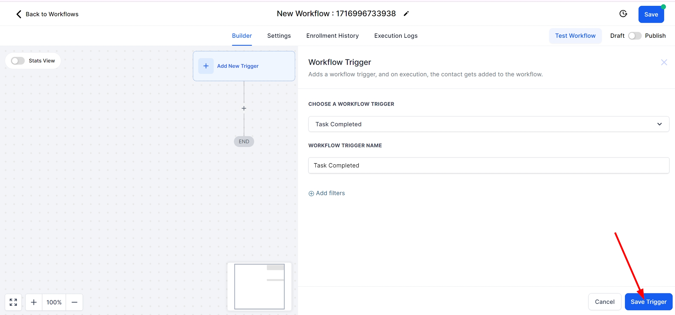 2. Add a Task Completion Trigger: Within the workflow, add the “Task Completed” trigger. This trigger will activate the workflow once a task is marked as completed.