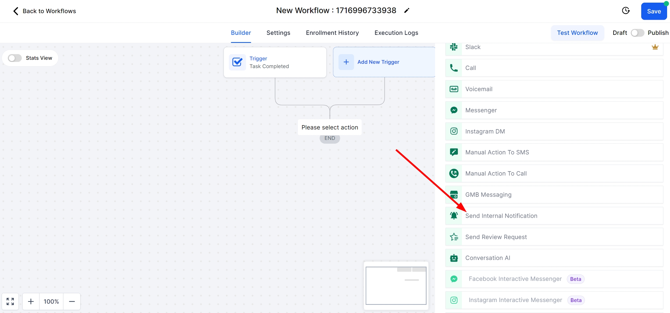 Initiate a New Workflow: Start by setting up a new workflow in the CRM, specifically for monitoring task completion.