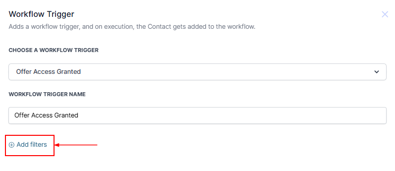 Within the Trigger, you can configure the filters by selecting Add Filters.