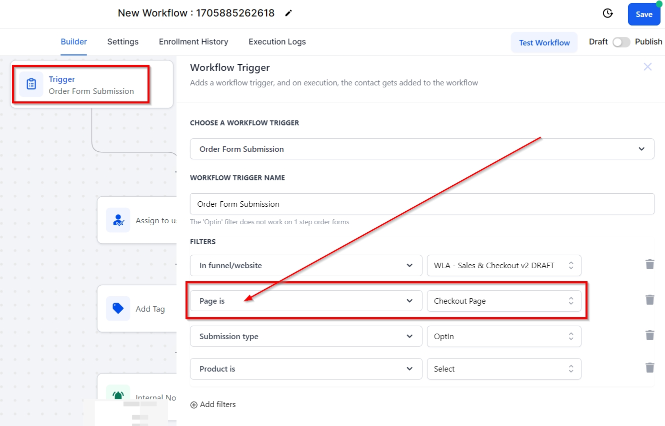 For example, by clicking on the "Registration Form" Page in the "Registration Form" funnel, this workflow will only trigger when a customer fills this specific page.