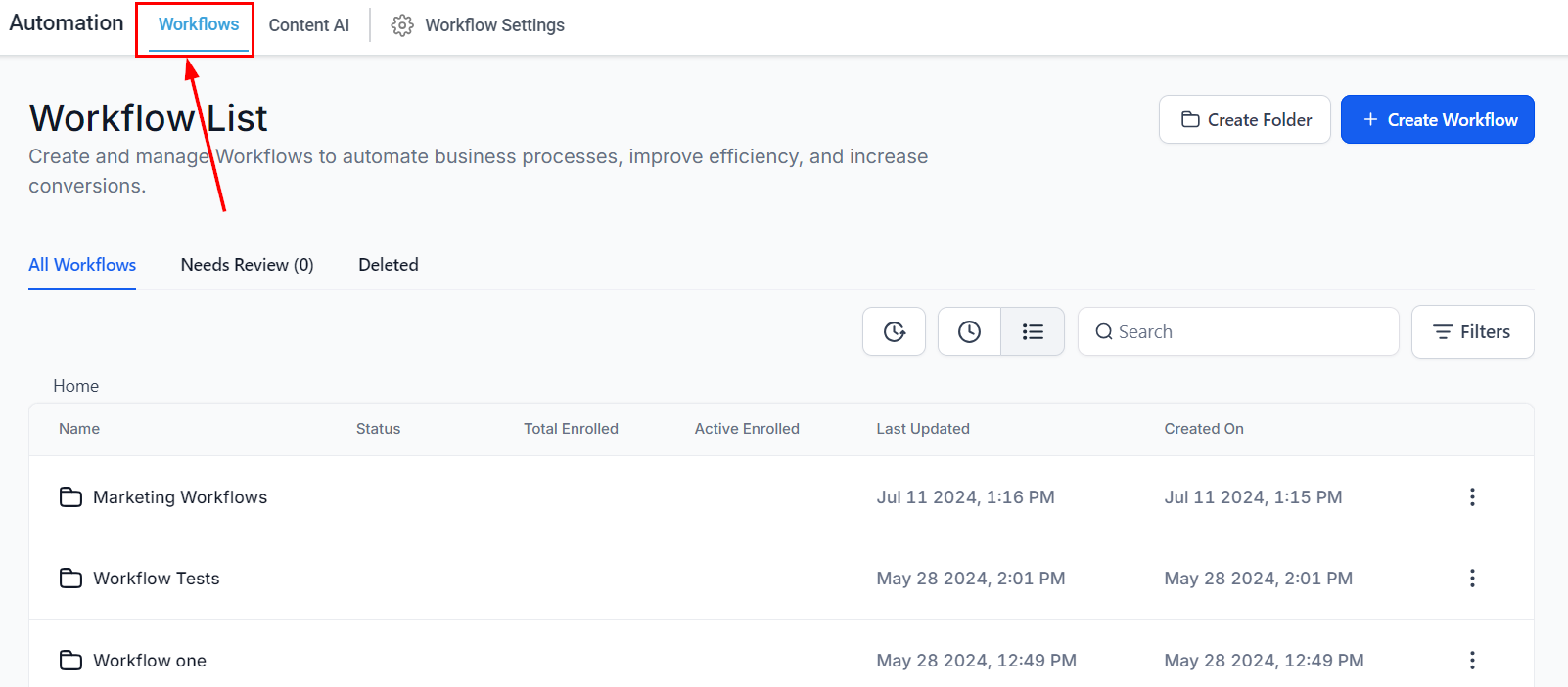 To get started with this trigger, navigate to the Workflows section within your account, then opt to edit an existing workflow or create a new one.
