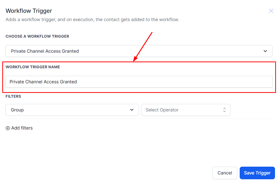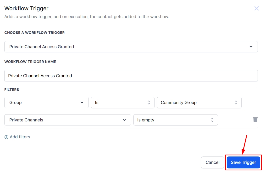 Further refine the trigger by applying additional filters to target specific private channels, if desired.