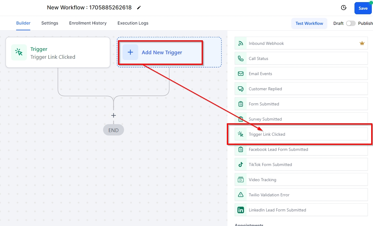 The Trigger Link Clicked automation is designed to automate actions after a customer clicks on a trigger link. This trigger link can be used to book an appointment, place an order, and perform other actions. By setting up this trigger, businesses can streamline their workflow and automate specific actions, allowing for a more efficient and personalized customer experience.