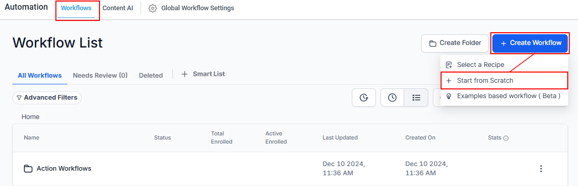 Then go to the “Automation” section and select “Workflow”. Choose to start from scratch.
