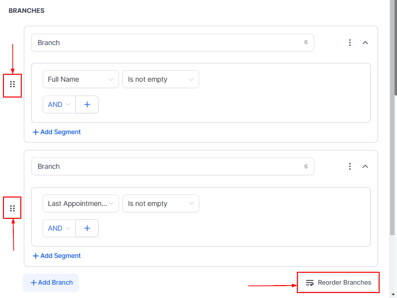 Organize your workflow visually by dragging and dropping branches to the desired order. Click the “Reorder Branches” icon for easier management.