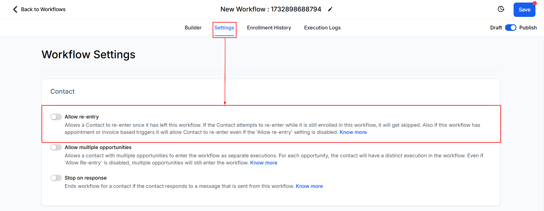 Re-Entry Settings