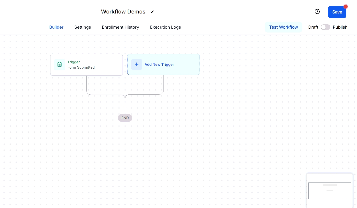 The trigger is the event that initiates the workflow, ensuring that the automation process begins when a specific action occurs. To configure your workflow to start when a form is submitted, select the "Form Submitted" trigger.