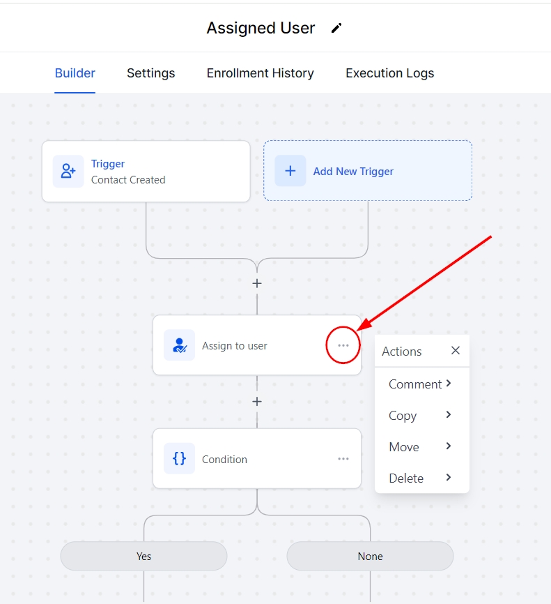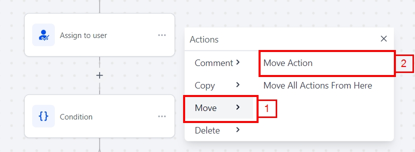 From the dropdown menu, select the "Move" option. If you're moving a single action, click on "Move Action." This will allow you to reposition one specific action within the workflow.