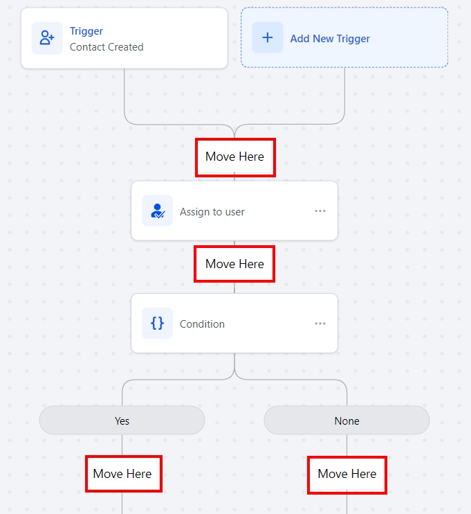 Special Note for If/Else Actions: When moving an If/Else action, be aware that it will also move all steps below that action, including any branches (Yes and None). It's crucial to rearrange the condition accordingly to ensure the logic of your workflow remains intact.