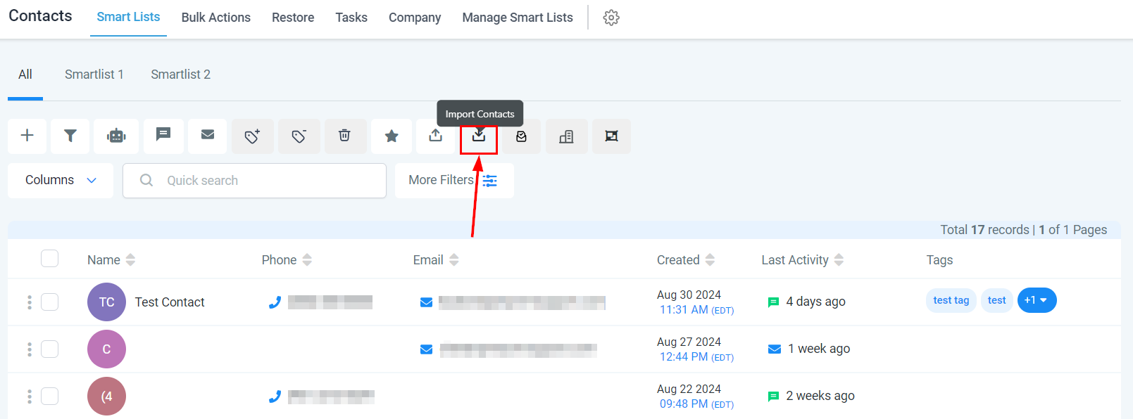 Go to Contacts and select Import Contacts from the Bulk Actions menu.