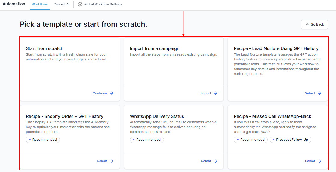 Workflow Recipes are like having a helping hand to simplify your automation processes. They give you a head start with pre-built templates while letting you tweak and adjust everything to fit your unique needs. Whether you're following up with leads, sending appointment confirmations, or engaging customers on their special days, these templates make it easier to get things done.