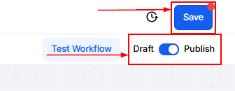 After customizing, click "Save." To activate it, switch the Workflow from Draft to Published mode.