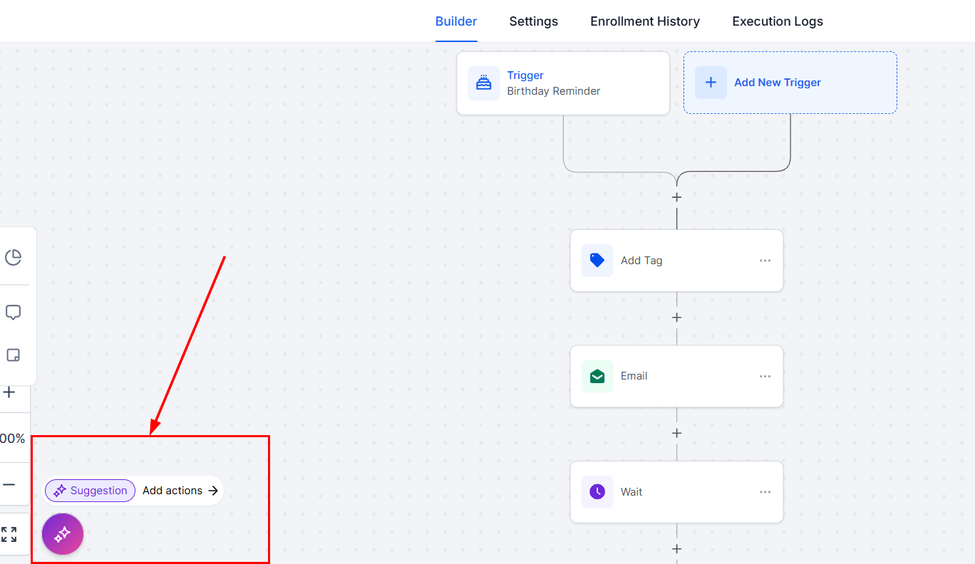 Alternatively, you can click on “Suggestions” or “Add Actions” to get specific recommendations from Workflow AI.