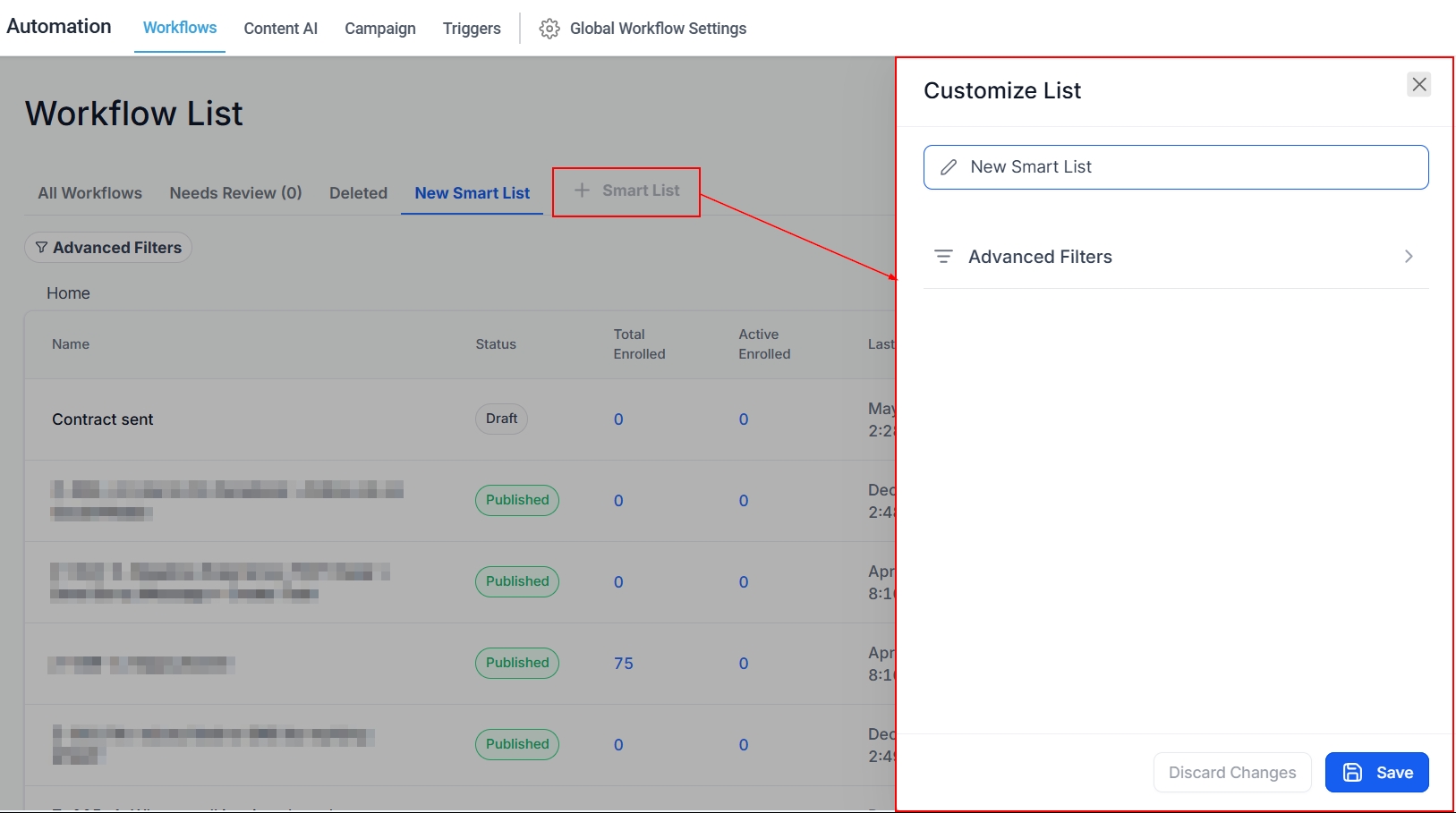 Use the Smart List feature to easily manage workflows that meet specific criteria and improve your organization.