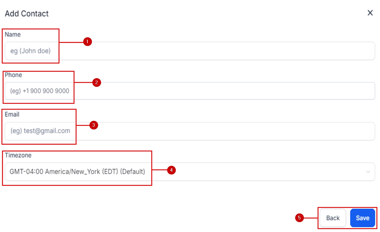 The contact's time zone is important for the system, so ensure you enter it correctly. The follow-up emails and texts will all be sent according to this field.
