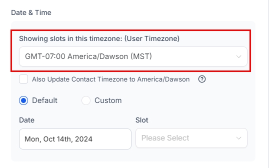 First, select the preferred timezone for this appointment. You can use the system Timezone or the client's own.