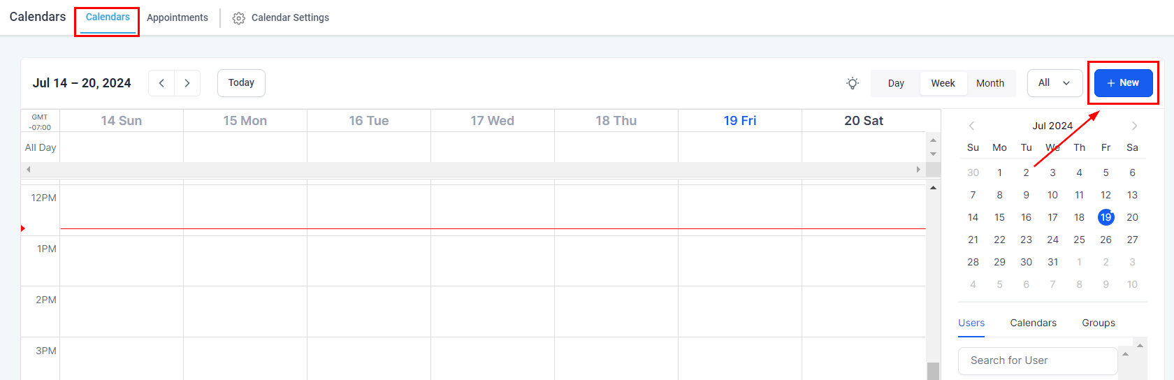 To use it go inside your Calendars tab and click the +New button to add an appointment.